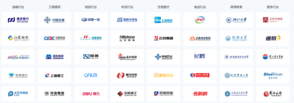 客户案例涵盖金融、工程建筑、制造、医药等多个行业