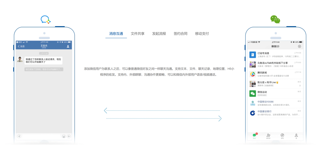 现在企业微信已经与微信互通,你在内部系统中就可以与外部的微信联系人对话