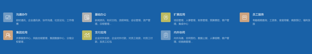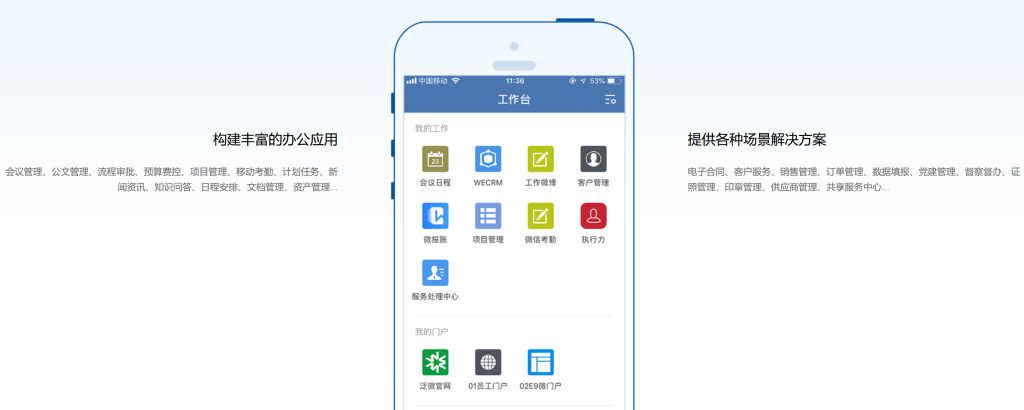 泛微在企业微信内外连通的能力上,提供各种内外协同办公的应用和场景解决方案