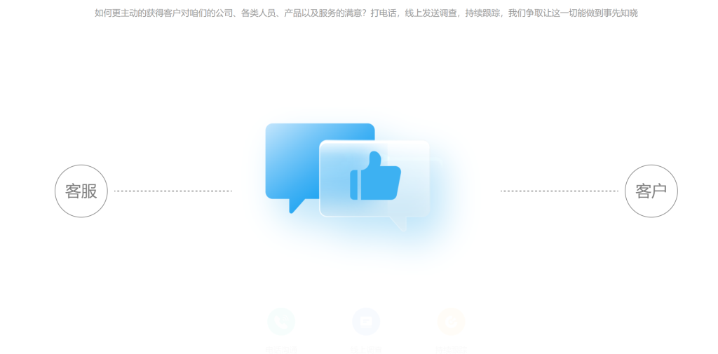 如何更主动的获得客户对咱们的公司、各类人员、产品以及服务的满意?打电话,线上发送调查,持续跟踪,我们争取让这一切能做到事先知晓