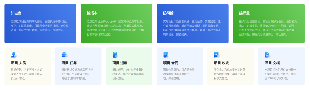 实现组织中的各类项目“知进度·控成本·防风险·提质量”