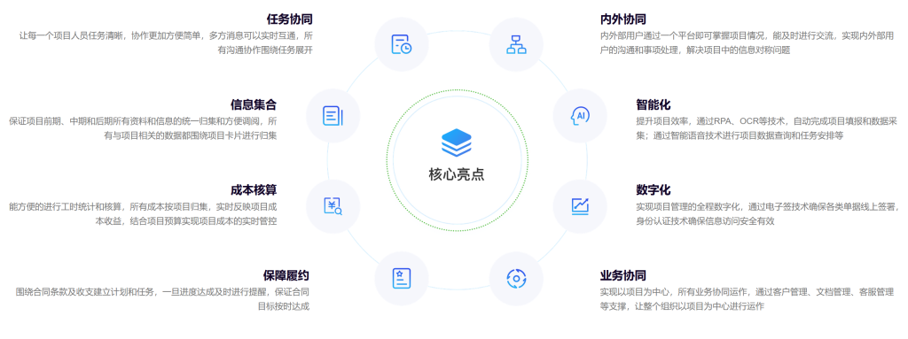 全生命周期的数智化项目管理管控手段,并打通内外协同,让整个组织以项目为中心进行高效运作
