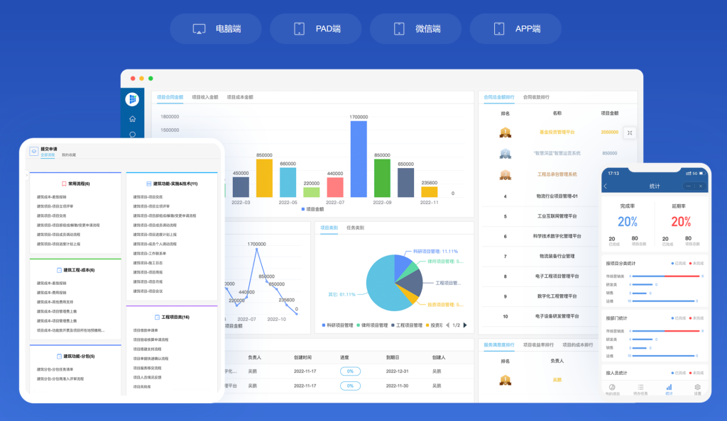 以智能化·平台化·数智化·移动化为核心基础,为组织提供全面的项目管理平台