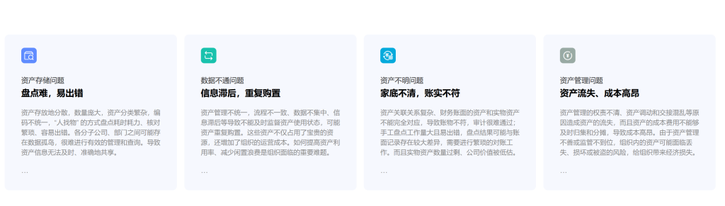 信息不全面、盘点对账难度大、闲置浪费、监管不到位等