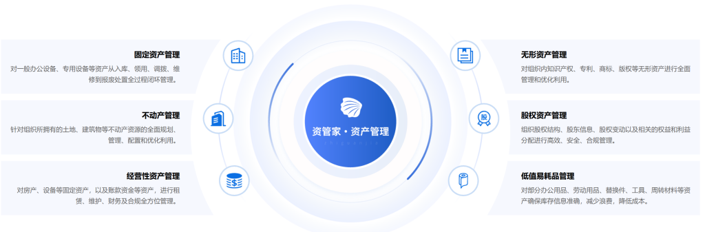 资管家为众多政府机关、金融、制造、商贸服务等行业的中大型组织客户提供资产管理管控服务