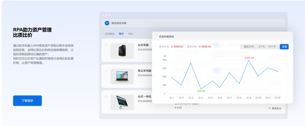 RPA全网比价让采购质优价廉、让资产保值增值