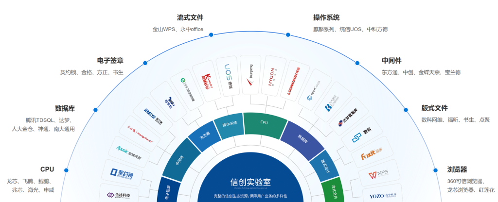 支持主流的信创芯片、数据库、中间件、操作系统及浏览器,无需关心底层环境,降低信创适配成本
