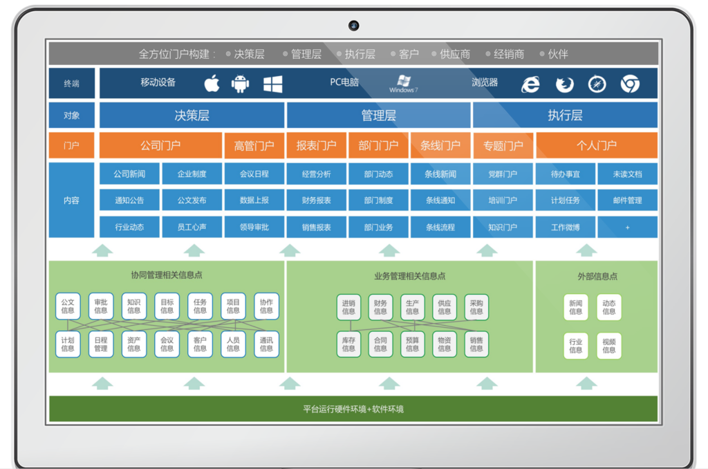 通过各级门户的有效聚合,可以帮助企业真正实现事找人的工作环境。