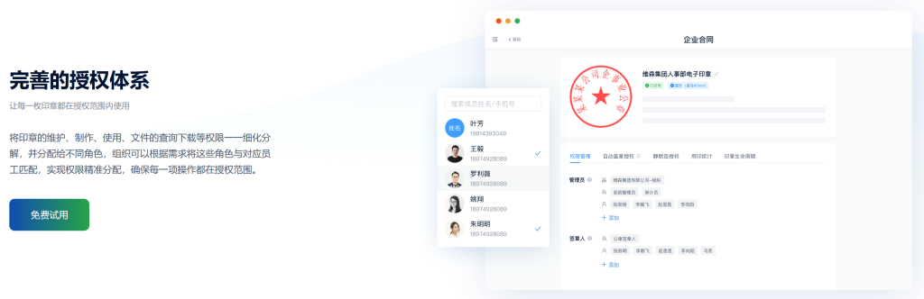 按照组织印章管理制度为每一枚印章建立授权体系,让印章都在授权范围内安全高效使用。