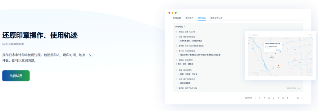 所有印章的授权、使用、变更都有日志留痕。审计日志可以还原每一枚印章的操作、使用轨迹。用印人、用印时间、用印地点、用印文件一查便知。