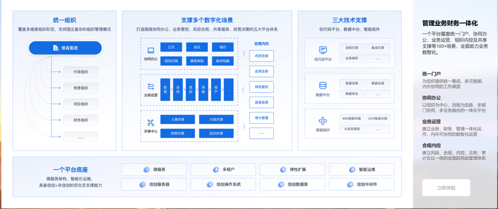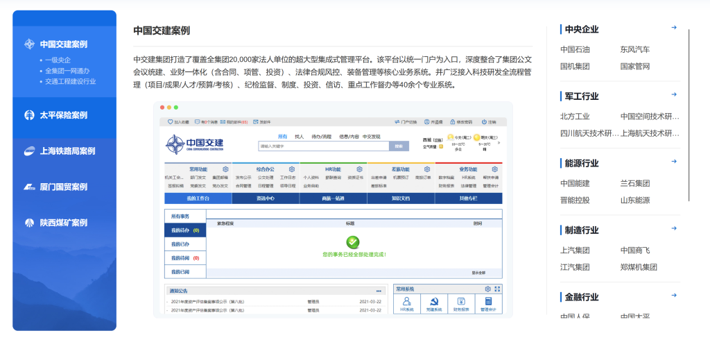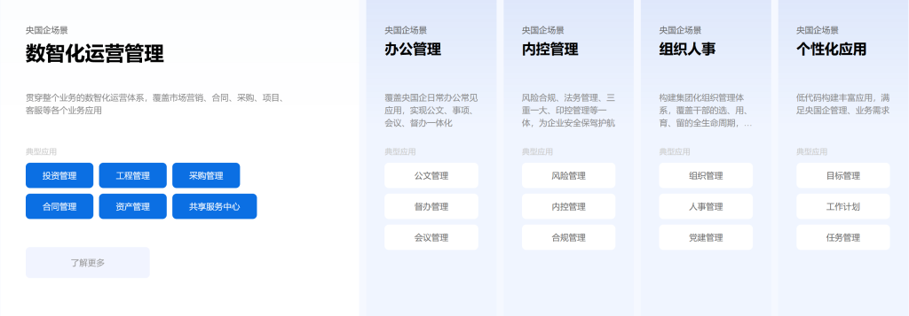 为军工、烟草、重工、建筑、金融等行业的央国企客户提供数智化运营平台