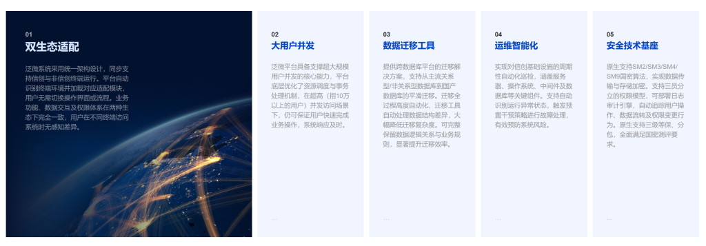 双生态无感切换、支撑超大规模并发、平滑智能迁移、自动运维保障、全生命周期交付支撑