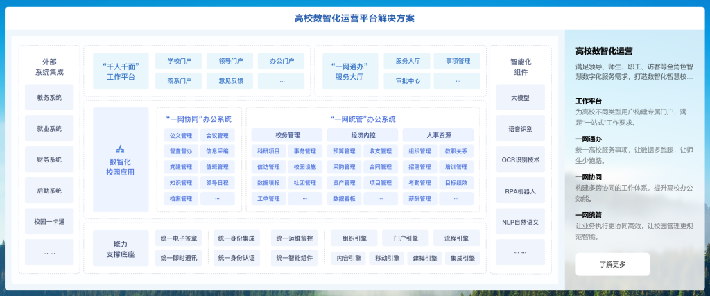 一个平台搭载丰富数智化管理和服务应用,可灵活拓展