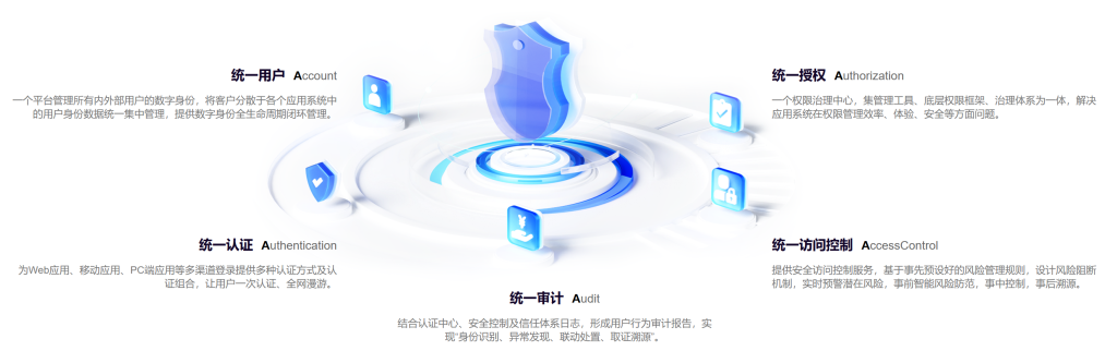 实现统一用户、统一认证、统一授权、统一访问控制、统一审计,让身份管理和系统访问更安全更方便