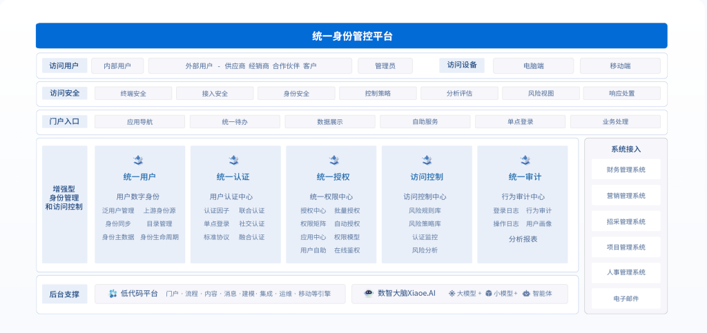 以智能化·平台化·数字化·移动化为核心基础,为组织提供全面的统一身份管控平台