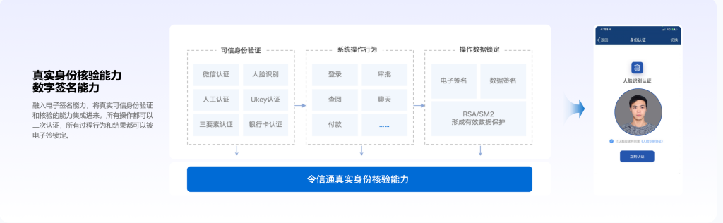 借助电子签名技术实现真实身份核验能力,所有的过程行为都可以通过核验真实身份二次认证