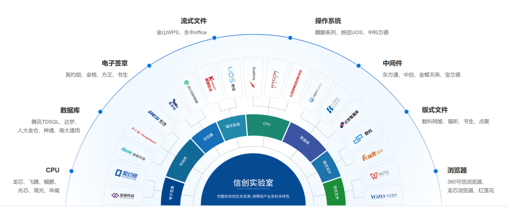 支持主流的信创芯片、数据库、中间件、操作系统及浏览器,无需关心底层环境,降低信创适配成本